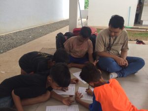 Kemudian kami memulai bimbingan dengan menjelaskan terlebih dahulu apa itu metamorfosis dan juga proses metamorfosis yang terjadi pada kupu-kupu. Setelah memberikan pemahaman mengenai metamorfosis, kami berusaha untuk mengajarkan dalam Bahasa inggris, dimaksudkan untuk menambah kosa kata mereka. Kemudian kami memberikan beberapa work sheet untuk melihat sejauh mana pemahaman mereka mengenai metamorfosis kupu-kupu.